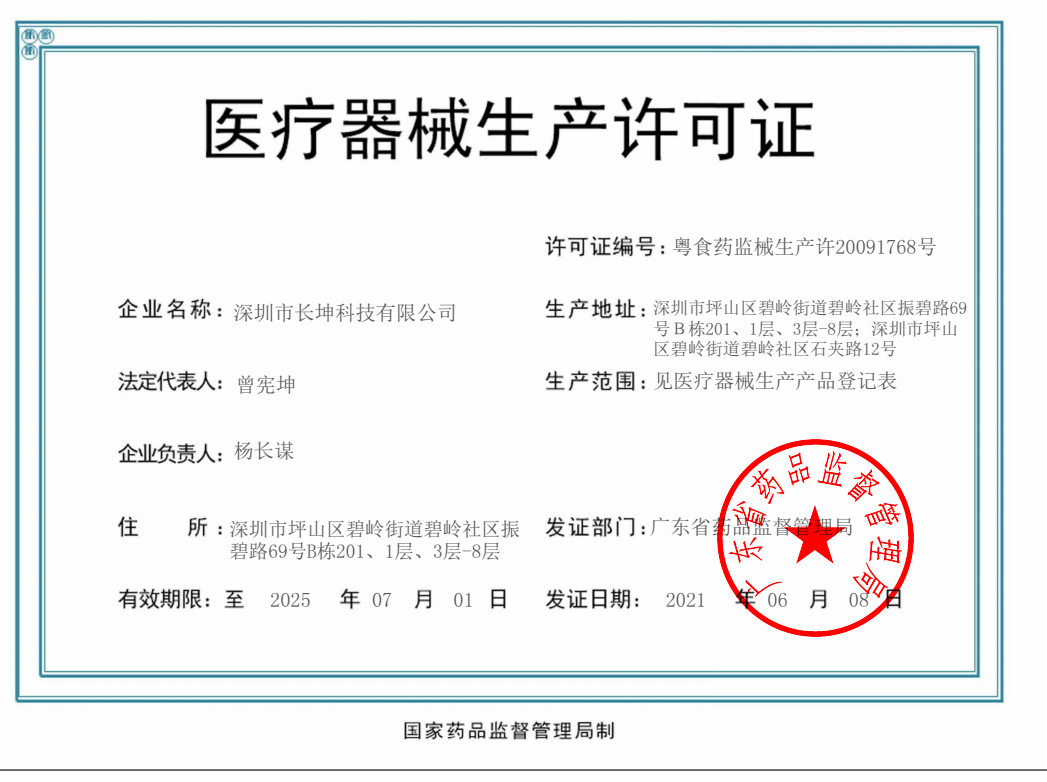 歡迎來到深圳市長坤科技有限公司官網(wǎng)!      粵深食藥監(jiān)械經(jīng)營備20151166號      粵食藥監(jiān)械生產(chǎn)許20091768號
